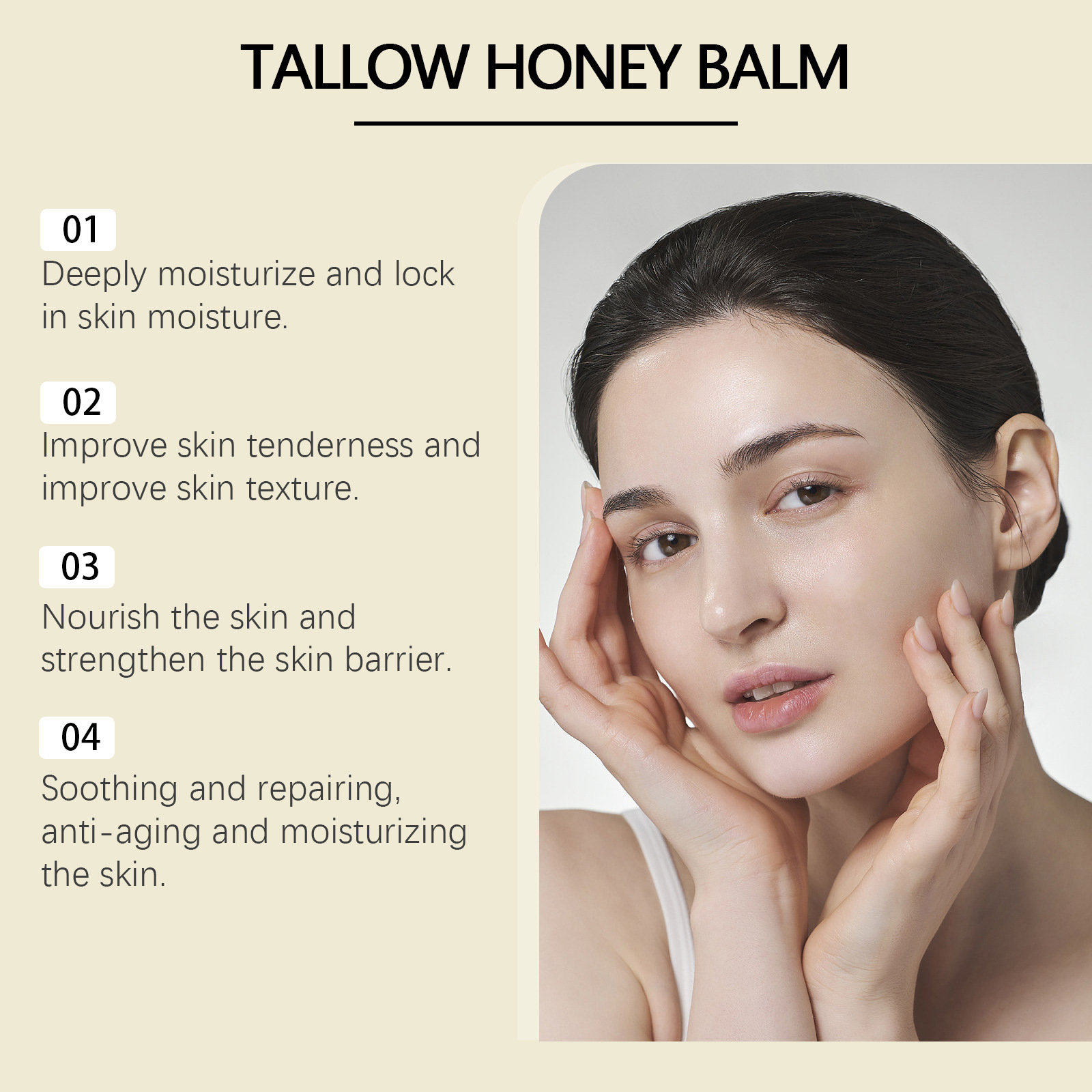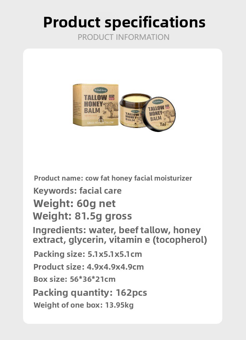 This moisturizer balm helps keep your skin soft, hydrated, and glowing. Beef tallow and honey work together to support moisture retention and give your skin a smooth, healthy appearance. Perfect for everyday use on dry, dull, or irritated skin.